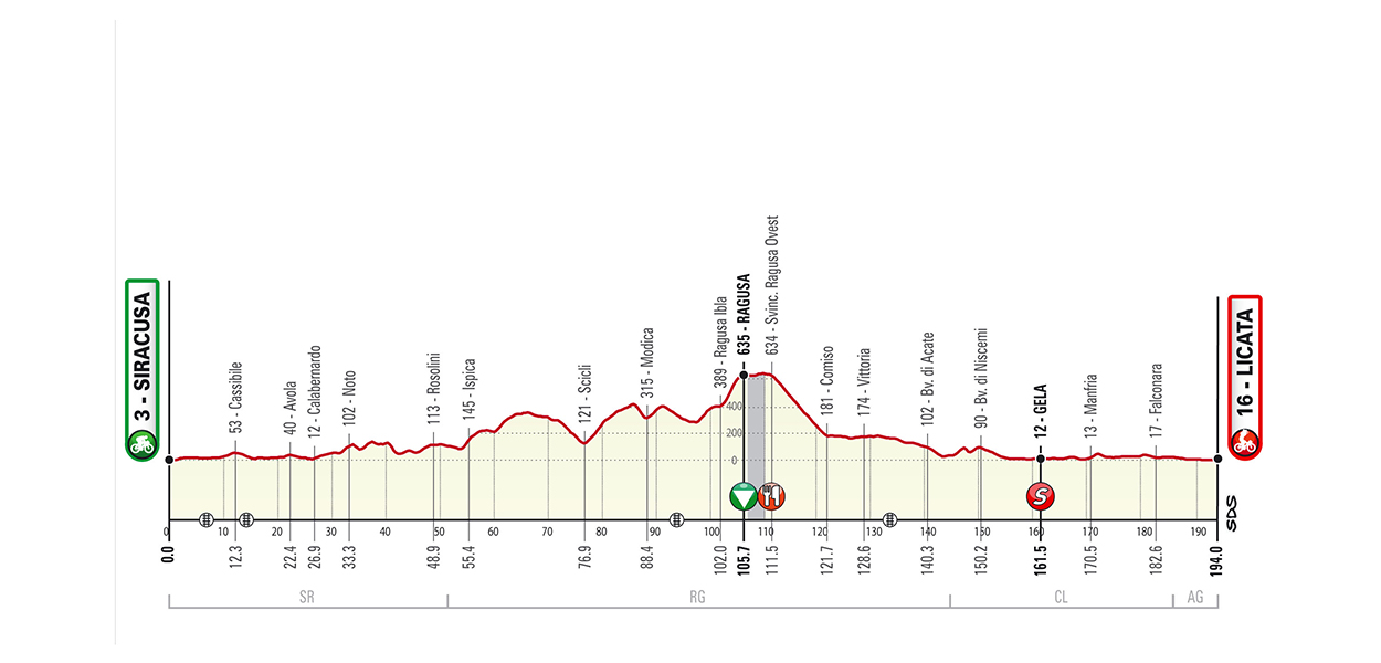 - Stage 1: Siracusa – Licata (194 km)