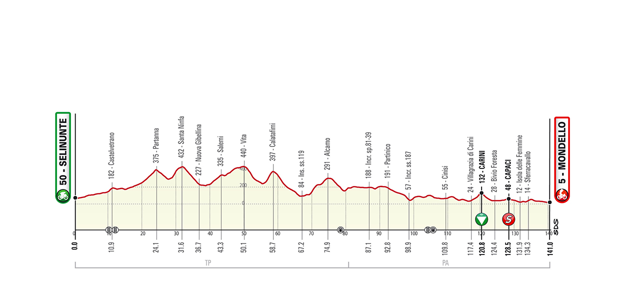- Stage 2: Selinunte – Mondello (141 km)