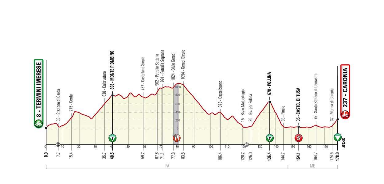 - Stage 3: Termini Imerese – Caronia (178 km)
