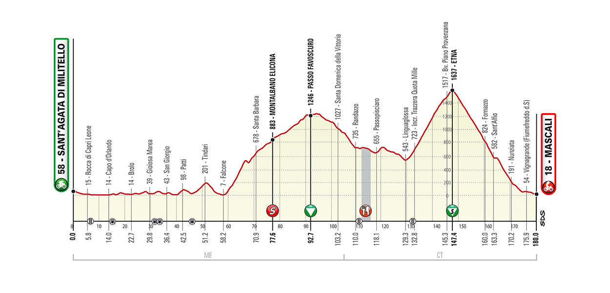 - Stage 4: Sant’Agata di Militello – Mascali (180 km)