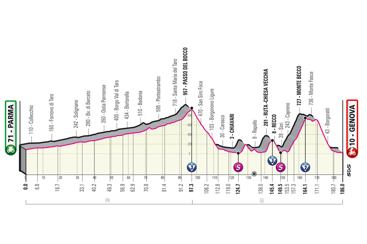 - Parma – Genova (186 km, 2840 metri di dislivello)