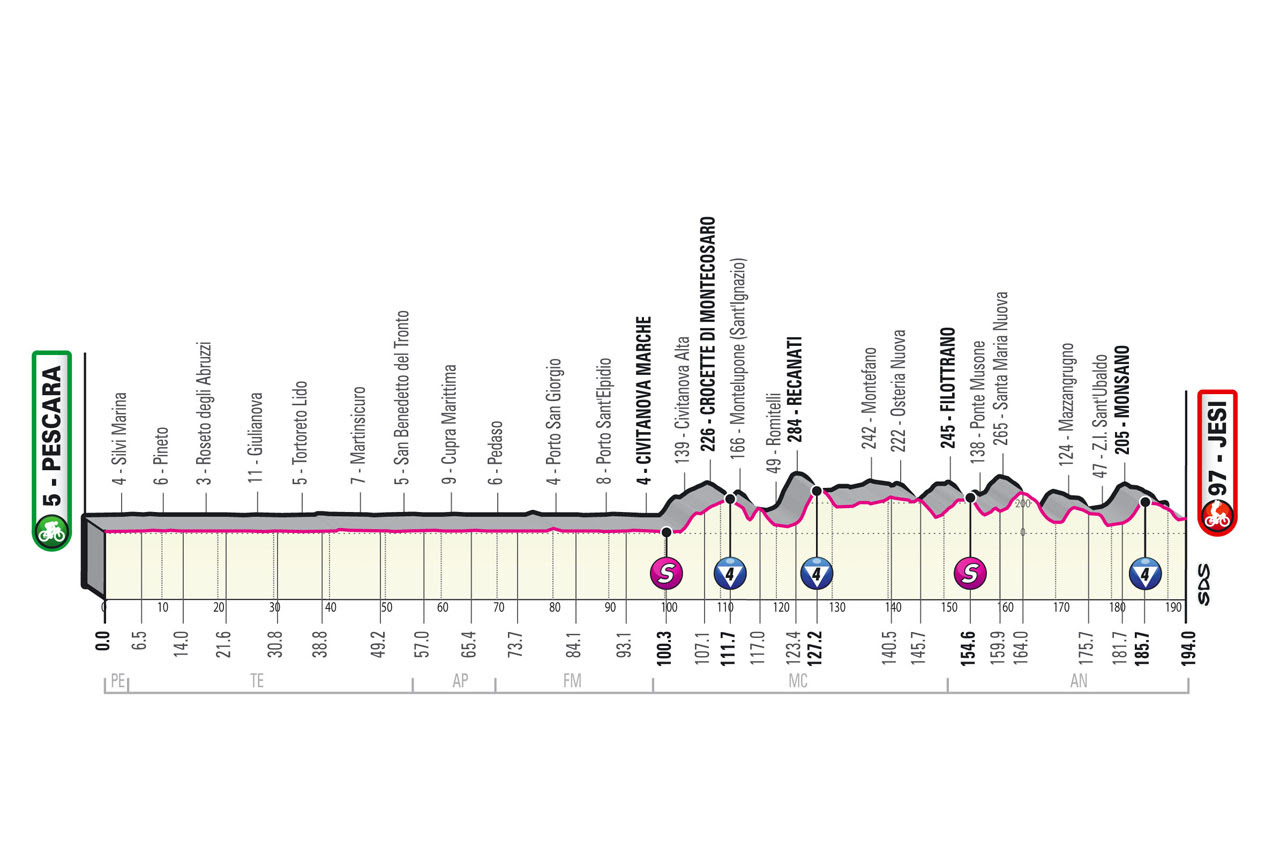 - Pescara – Jesi (194 km, 1730 metri di dislivello)