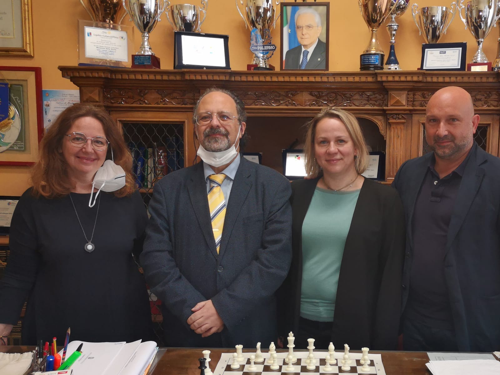 - Angelica Tantillo – Presidente di Turismosicilia, Prof. Fabio Mauthe Degeferld – Dirigente scolastico dell’Istituto Comprensivo Statale “Alberico Gentili” di Palermo, Olga Zimina – Campionessa Italiana di Scacchi, Antonio Manganiello