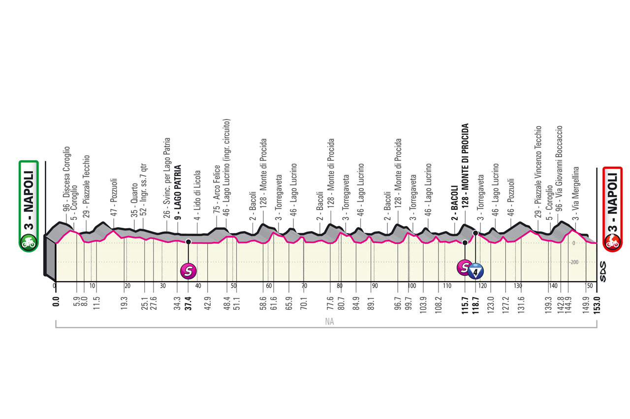 Dopo la vittoria di Koen Bouwman (Team Jumbo – Visma) nella tappa di ieri a Potenza, il Giro d’Italia (2.UWT)  fa tappa a Napoli per un tappa tutt’altro che semplice di 153 km2130 metri di dislivello e il circuito del Monte di Procida.