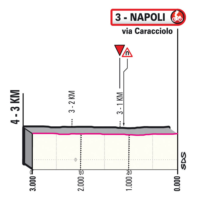 Strappo di Lago Lucano (700 metri al 9,3%) prima del finale con strada che continua a salire dopo Coroglio prima dell’avvicinamento nel capoluogo partenopeo; ultimi 3 km perfettamente pianeggianti percorrendo via Dohrn e via Caracciolo verso est per effettuare un giro di boa attorno a una rotatoria all’ultimi km e ripercorrere via Caracciolo fino all’arrivo. Rettilineo d’arrivo di 900 m su asfalto.