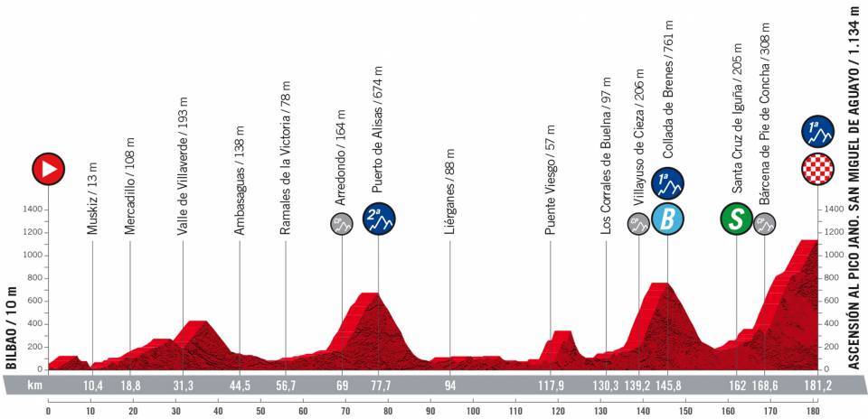 Primo arrivo in salita dell’edizione 2022 de La Vuelta (2.UWT) che “arriva” già nella sesta tappa la Bilbao – San Miguel de Aguayo di 181,2 km e un dislivello di poco superiore ai 4000 metri; partenza dalla città più grande dei Paesi Baschi, appunto Bilbao, capoluogo della Biscaglia, che sorge sulla riva del fiume Nervión.