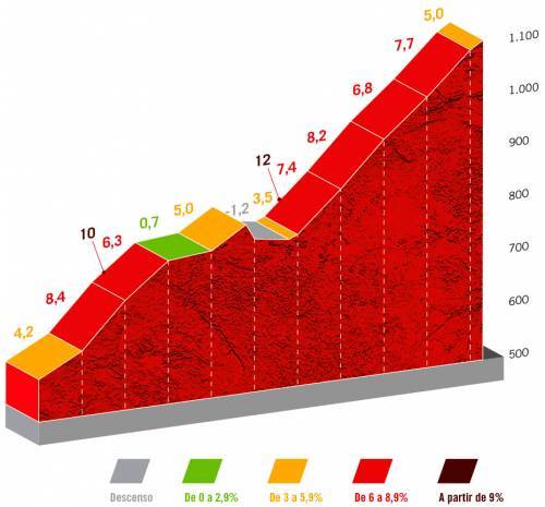 Dopo la partenza il gruppo troverà sotto le sue ruote pochissima pianura con la strada che sarà un continuo saliscendi; al km 133 è posto a Segura de Léon il traguardo volante. La salita finale che conduce al Monasterio de Tentudía che misura circa 9400 metri al 5,2%.