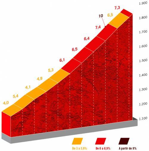 Ultimi sessanta chilometri di tappa che prevedono in successione il Puerto de Canencia (7300 metri al 4,3%), il Puerto de la Morcuera (9200 metri al 6,8%), il traguardo volante di Rascafria e il secondo passaggio lungo il Puerto de Cobos (10,5 km al 5,6%) seguito da un tratto in falsopiano di 6 km che conduce all’arrivo di tappa.
