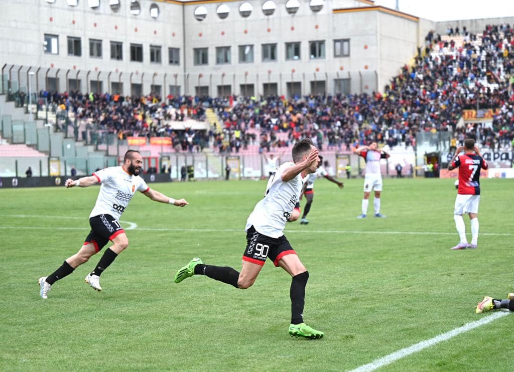 L'esultanza di Ragusa al gol partita (foto Acr Messina)