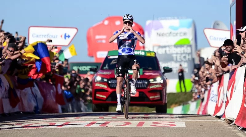 La buona fuga di giornata per una volta non ha tardato a formarsi dopo la partenza di Pola de Allande. Sono 14 i corridori presenti, e come di consueto negli ultimi giorni c’è chi indossa la maglia a pois e cioè Remco Evenepoel (Soudal Quick-Step), con lui nomi importanti Egan Bernal (INEOS Grenadiers), Damiano Caruso (Bahrain Victorious) e poi Max Poole (Team dsm-firmenich), Lewis Askey , Lorenzo Germani (Groupama-FDJ), Nico Denz (BORA-hansgrohe), Jarrad Drizners , Andreas Kron (Lotto Dstny), Imanol Erviti (Movistar Team), Andrea Piccolo(Ef Education-EasyPost), e Julien Bernard (Lidl-Trek), Paul Ourselin (TotalEnergies) e Hugo Hofstetter (Arkéa-Samsic). I 14 partono velocemente, il gruppo e il Jumbo-Visma danno la loro benedizione e così il divario raggiunge i 10 minuti dopo 60 km di corsa e dunque non ci sono dubbi che la vittoria di tappa andrà ad uno di questi uomini in fuga. Evenepoel attraversa in testa l’ Alto de las Estacas (5,2 km al 7,4%) e poi il Puerto de San Lorenzo (10 km al 8,5%) e conquistando 15 nuovi punti, il belga non può più essere raggiunto da Jonas Vingegaard (Jumbo-Visma) e dunque salirà con la maglia a pois sul podio di Madrid.