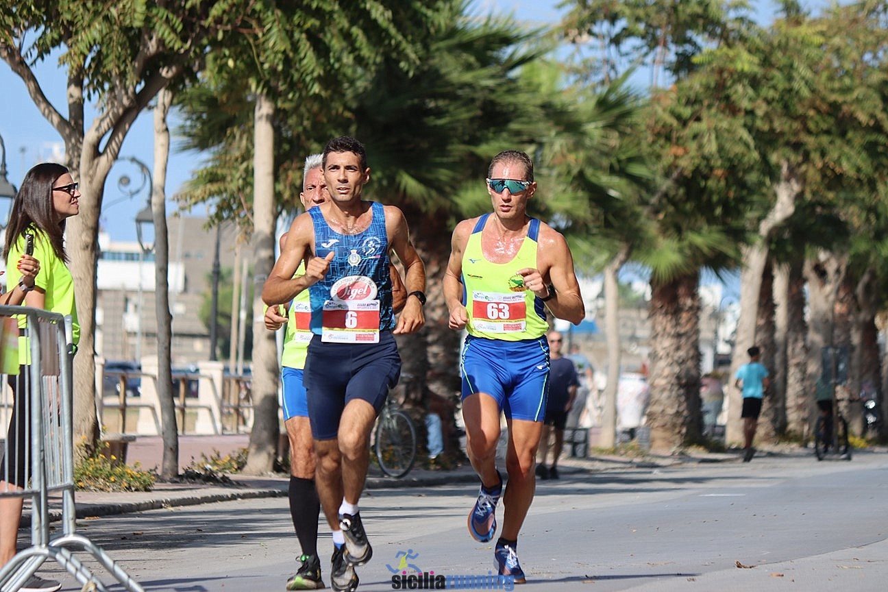 Il 29enne alfiere della società biancazzurra ha concluso in 1:20:33, tempo che gli è valso, oltre che il primo di categoria, il quarto posto della classifica assoluta. Un crono di tutto rispetto se si considera il grande caldo ed il vento contrario del lungomare durante tutta la gara. Matilde Rallo, invece, ha tagliato il traguardo in 1:52:09. Sul podio, inoltre, entrambi al terzo posto, sono saliti anche Giuseppe Mazzara (SM50) e Antonio Pizzo (SM60), rispettivamente con il tempo di 1:27:36 e 1:35:59. Mentre hanno sfiorato il podio Damiano Ardagna, quarto nella SM50 (1:29:25), Fabio Sammartano (1:27:17) e Francesco Croce (1:37:29), entrambi in quinta posizione, rispettivamente, nella SM45 e nella SM60. Hanno, inoltre, tagliato il traguardo, nell’ordine, Edoardo Di Sarno (1:33:46), Giuseppe Cerame (1:40:41), Fabio Caltagirone, Giuseppe Mezzapelle, Antonino Chirco, Antonio Vatore, Pietro Sciacca e Agostino Impiccichè.