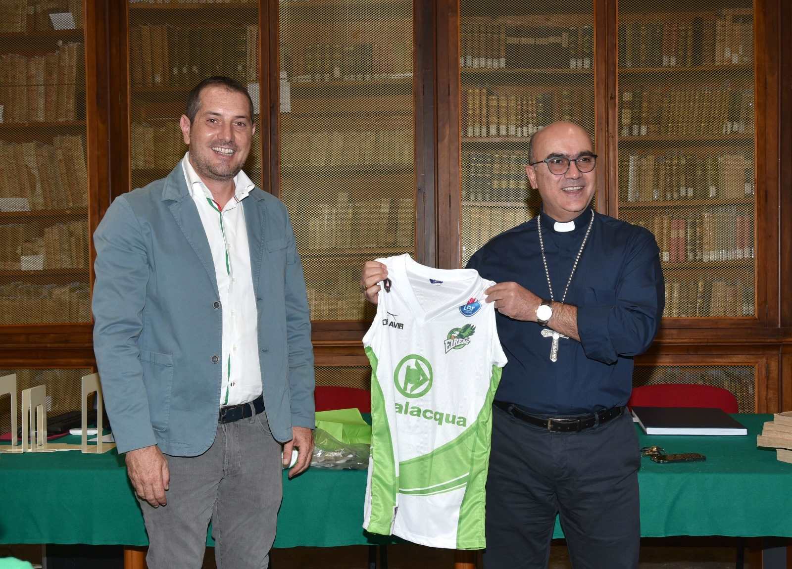Dopo la visita in Prefettura la comitiva biancoverde è stata ricevuta in vescovado dal vescovo della Diocesi di Ragusa, monsignor Giuseppe La Placa. Sia il prefetto che il vescovo, che da giovani hanno praticato proprio la pallacanestro come sport, sono stati curiosi di conoscere una ad una tutte le giocatrici che compongono il roster 2023/2024, di conoscerne i ruoli e le provenienze. Ad entrambi, che hanno formulato i migliori auguri per un campionato in cui la squadra dovrà essere portatrice di valori non soltanto sportivi ma anche etico-sociali, il presidente Passalacqua ha donato le maglie ufficiali del team ibleo con le classiche tinte biancoverdi.