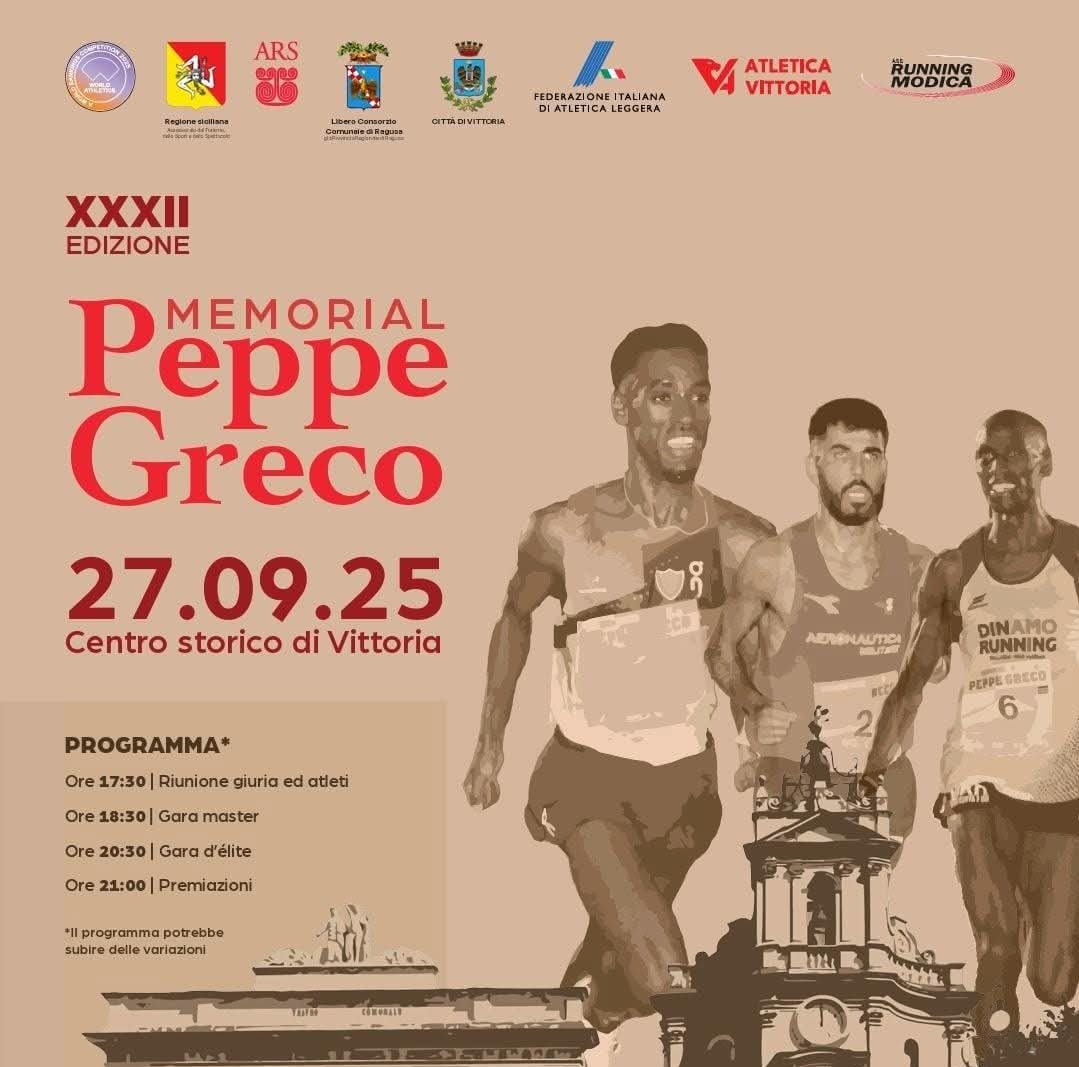 Domani, giovedì 18 settembre 2025, alle ore 10:00, nella Sala degli Specchi “Ubaldo Balloni” di Palazzo Iacono, verrà presentata la 32ª edizione del Memorial Peppe Greco, la storica corsa in notturna che quest’anno si correrà nel centro storico di Vittoria. Alla conferenza stampa prenderanno parte: il sindaco Francesco Aiello, la presidente del Libero Consorzio Comunale di Ragusa Maria Rita Schembari, il sindaco di Modica Maria Monisteri, Gianni Voi patron del Peppe Greco, l’assessore allo sport di Vittoria, Fabio Prelati, Sebastiano Leonardi presidente Fidal Sicilia, Emanuele Assenza Consigliere regionale Fidal Sicilia, il Presidente della ASD Running Modica, Salvatore Gebbia Consigliere nazionale Fidal, Salvo Greco presidente della ASD polisportiva atletica Vittoria, Roberto Chiaramonte delegato provinciale CONI Ragusa. Il Memorial Peppe Greco, è nato nel 1990 in memoria del medico modicano appassionato di atletica, è oggi una delle corse su strada più prestigiose d’Italia, capace di richiamare campioni internazionali e migliaia di appassionati