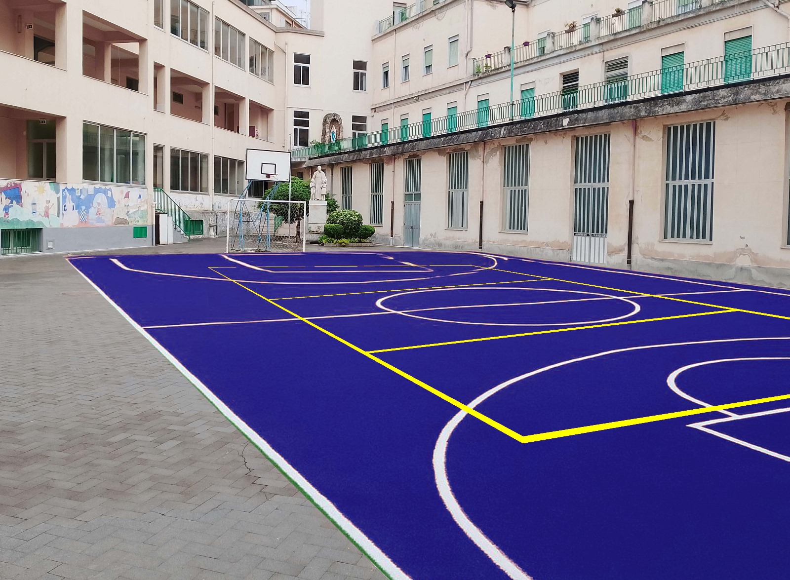 Il “tappeto blu” è stato realizzato da una nota azienda siciliana del settore con materiali altamente tecnologici, che rendono l’utilizzo ideale per ogni fascia d’età, a partire proprio dai bambini dell’istituto scolastico cittadino. “Grazie all’intervento della proprietà, è stato possibile realizzare questo campo, perché avevamo l’intenzione di implementare l’attività e l’offerta formativa della scuola anche dal punto di vista sportivo – dichiara l’amministratore delegato Antonio Coluccia -. Averlo a disposizione ci permette ora di poter sviluppare diverse discipline: basket, calcio, pallamano, che abbiamo iniziato quest’anno, volley e pattinaggio. Vi sono in atto, inoltre, importanti collaborazioni tra l’Istituto e società operanti nel territorio, come il Castanea Basket e la Gioco Sport. Ci siamo organizzati proprio per offrire un servizio competitivo e professionale”.