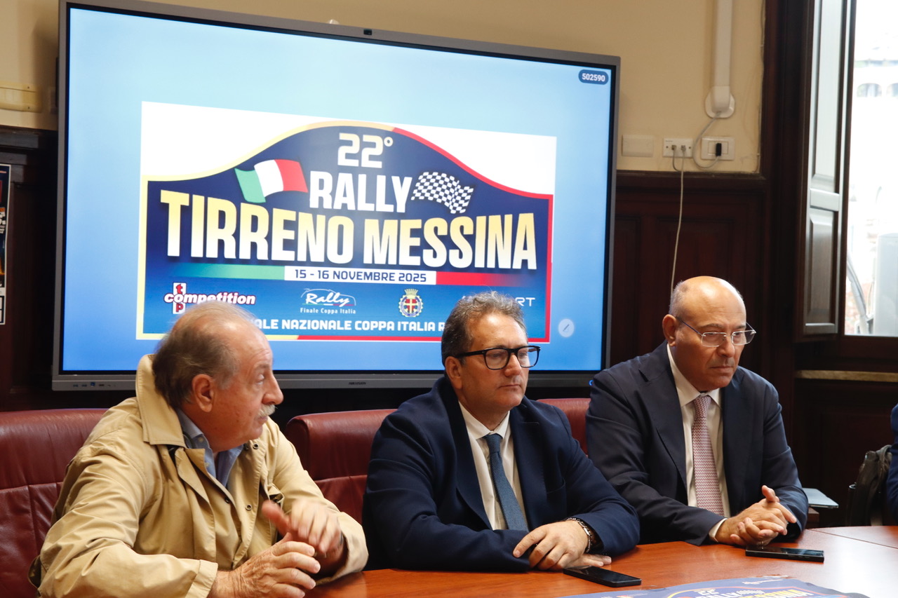 Nella Sala Ovale del Comune è stato presentato il 22° Rally Tirreno Messina. I particolari della Finale Nazionale della Coppa Italia Rally ACI Sport e tutte le iniziative correlate sono state illustrate dagli organizzatori di Top Competition, con gli Assessori comunali allo sport Massimo Finocchiaro e alla Protezione Civile Massimiliano Minutoli, il Presidente dell’Automobile Club Messina Massimo Rinaldi, il primo Cittadino di Roccavaldina Salvatore Visalli, l’Assessore allo Sport di Torregrotta Raffaele Nastasi ed i rappresentanti dei maggiori brand partner tra cui Grimaldi Lines, Vadalà Auto, Pirelli e Caronte & Tourist.