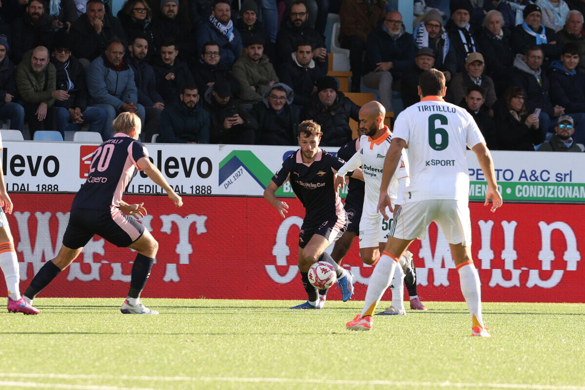 Al 20′ colpo di testa di Pohjanpalo, la palla è facile presa di Colombi. Il Palermo prova ad alzare il ritmo, i rosa avanzano il baricentro, al 26′ un colpo di testa Bani impegna il portiere locale che respinge.