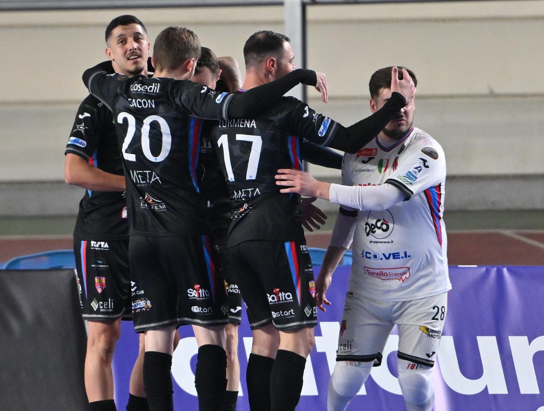 Nella ripresa, da palla inattiva, la Meta colpisce: appoggio di Drahovsky, finta, suolata e stoccata di Podda che sigla il 3-0. Sembra chiusa, con gli ospiti che appaiono in totale controllo. Il Napoli, però, non ci sta e la riapre, su schema da punizione dal limite, con Guilhermão in gol sottomisura, appostato all’altezza del secondo palo. Nel giro di pochi secondi Borruto porta i padroni di casa sul meno uno. Tutto nuovamente in discussione. Bellobuono d’istinto dice di no a Podda. Napoli con il power-play per gli assalti finali, ma la Meta è letale in ripartenza. Quando mancano 2′, assist di Carmelo Musumeci per Pulvirenti, conclusione secca che vale il 4-2 e sa di chiara ipoteca. A 7″ dalla sirena Bocão trova la porta sguarnita dalla distanza e sigla la cinquina, mettendo il punto esclamativo sul match. Vittoria pesante della Covei Meta Catania Bricocoty che sale a quota 22 e si prende la vetta solitaria della classifica, approfittando del contemporaneo ko dello Sporting Sala Consilina.