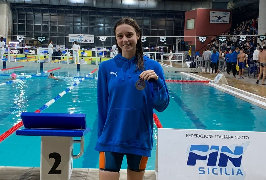 Michela Farmer (Sicilia Nuoto): 50 dorso (29”86), 100 dorso (1’04”14), 200 dorso (2’19”00).