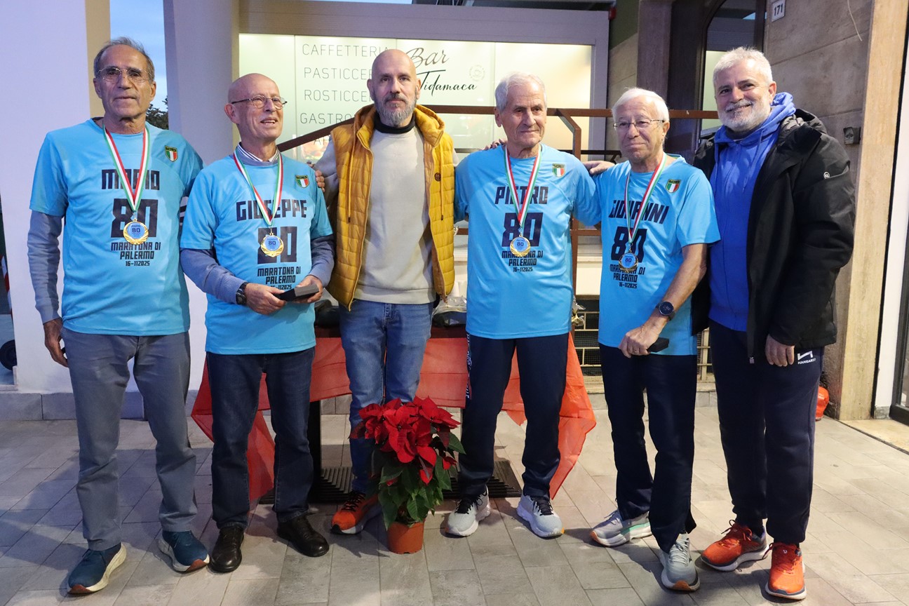 Si è svolta questo pomeriggio, presso il negozio Per Correre di via Croce Rossa a Palermo, la consegna dei riconoscimenti ai quattro straordinari protagonisti della staffetta “ultra” portata a termine durante la Maratona di Palermo dello scorso 16 novembre: Mario Lo Cicero, Giovanni Imperato, Giuseppe Salica e Pietro Mafa, tutti rigorosamente over 80. Trecentoventinove anni in quattro.