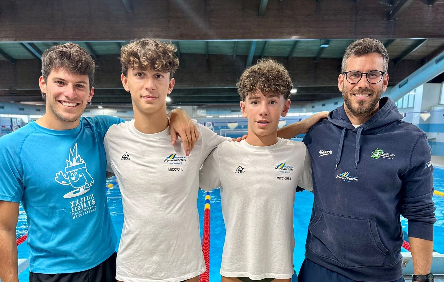 “I due fratelli Miccichè sono molto simili a livello estetico, stessa fisionomia e stesso fisico anche se il piccolino avendo qualche anno in meno è più basso. Andrea, il più piccolo, viene dal calcio, in piscina veniva 2-3 volte a settimana inizialmente. È molto determinato e ha deciso dall’anno scorso di fare solo nuoto, a livello mentale se si mette una cosa in testa la porta a termine. L’obiettivo ad esempio era prendersi i tempi per i Criteria e dopo due appuntamenti ci è già riuscito”.