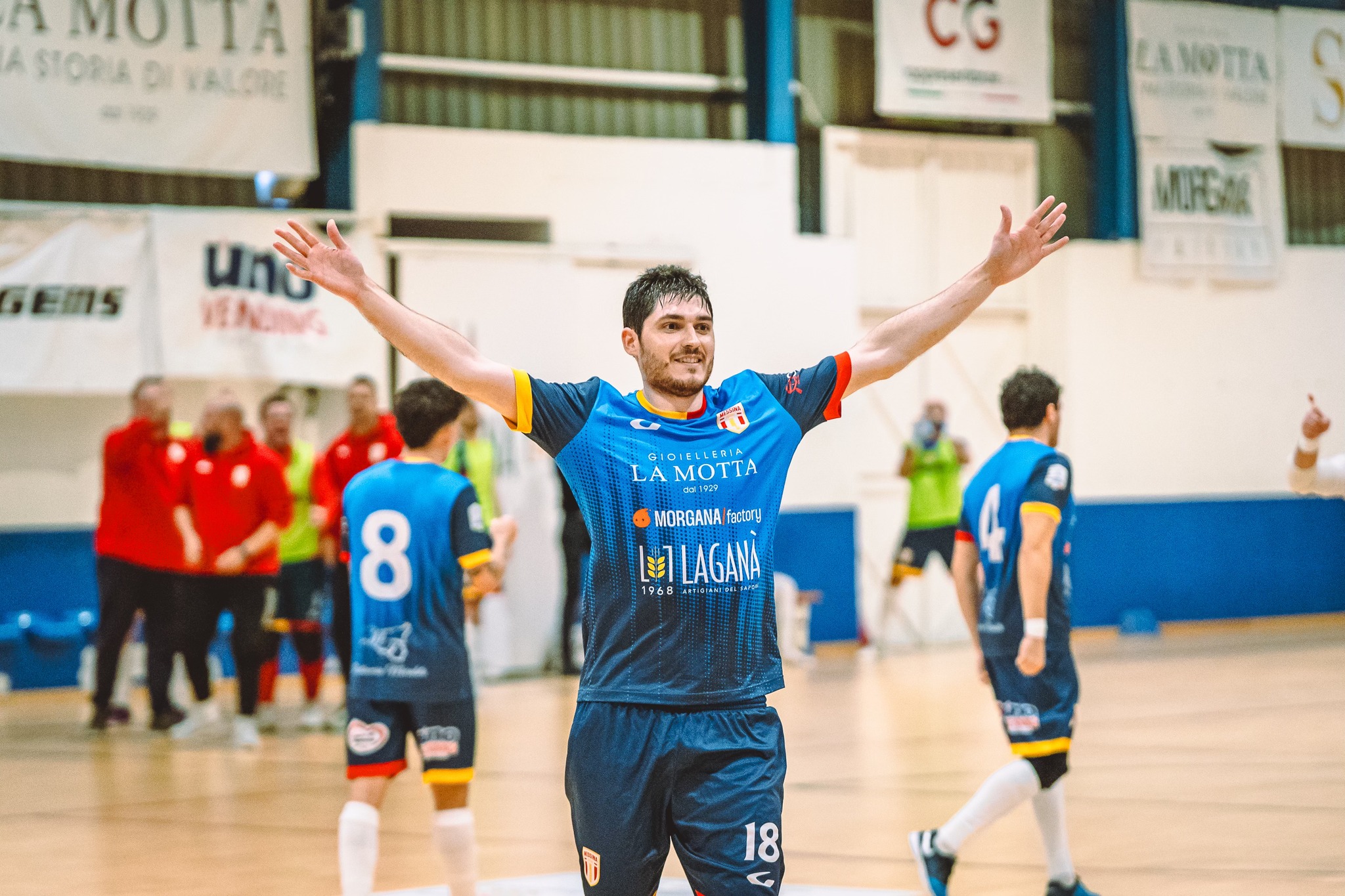 Dopo le iniziali fasi di studio, il match regala due scosse giallorosse al 6’, quando Antonio Adamo firma una doppietta di pregevole fattura in appena 20”. Tre minuti dopo, l’incrocio dei pali nega il tris alla staffilata del capitano Nanni Piccolo. Sull’altro fronte, un salvataggio di Antonino D’Angelo impedisce ai calabresi di dimezzare le distanze.