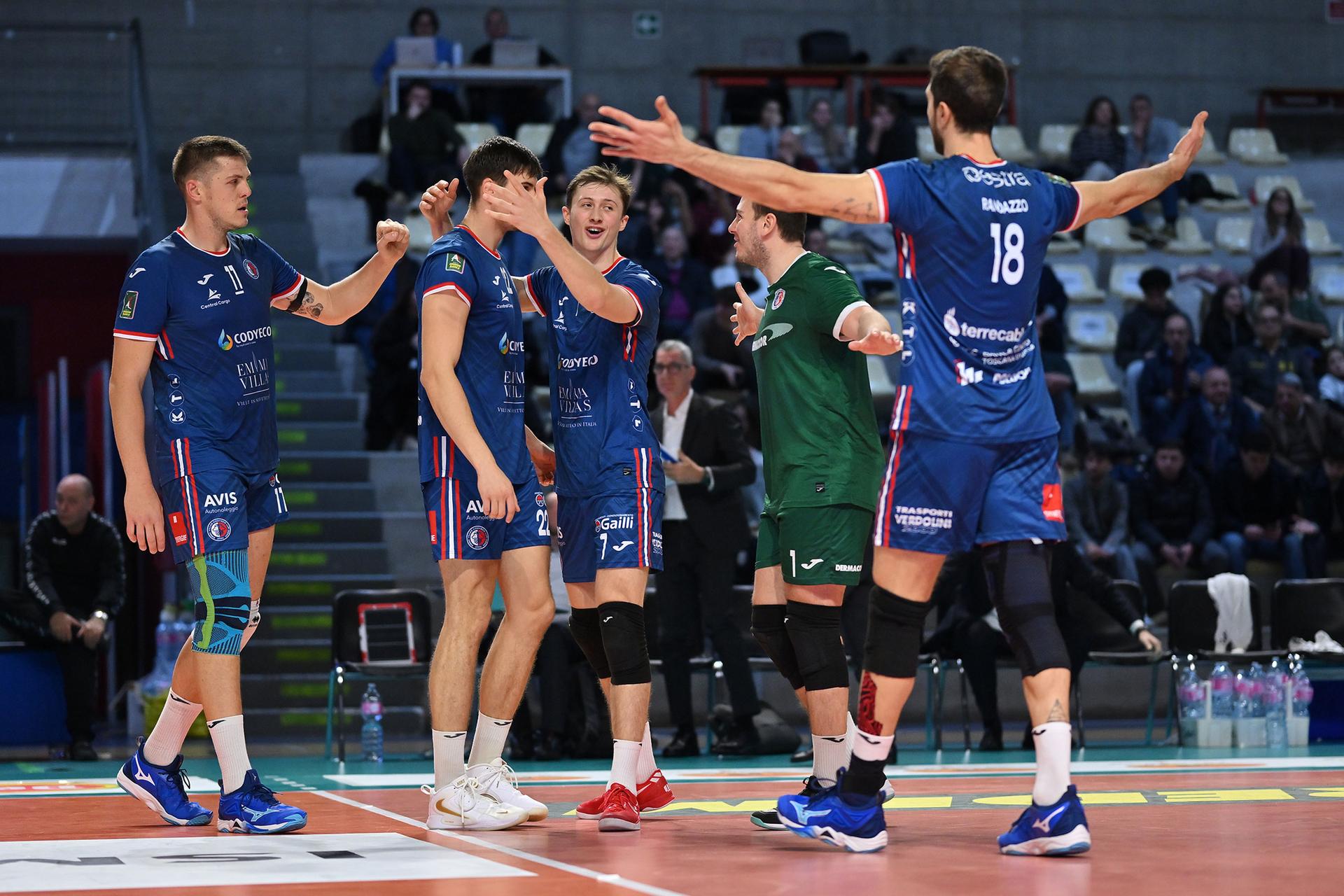 Emma Villas Codyeco Lupi Siena scende in campo con Mikkel Hoff al palleggio, Gabriele Nelli opposto, in banda Luigi Randazzo e Felipe Benavidez, centrali Victorio Ceban e Federico Compagnoni, il libero è Alessandro Piccinelli. Virtus Aversa risponde con Garnica in regia, gli schiacciatori sono Alessio Tallone e Nicola Tiozzo, Matheus Motzo nel ruolo di opposto, centrali Andrea Mattei e Marco Volpato, il libero è Mattia Raffa.