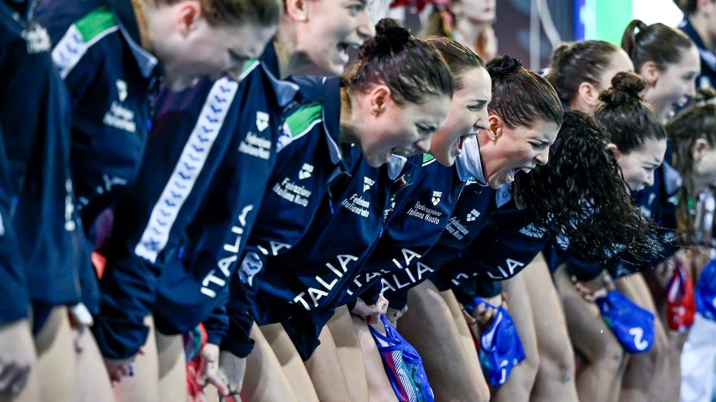 Foteini Tricha, da posizione 3, insacca l’1-0 con un tiro sul pelo dell’acqua dopo soli cinquanta secondi. Il sette in calottina scura non riesce a rendersi pericoloso in fase offensiva e subisce il raddoppio di Eleftheria Plevritou, ma Roberta Bianconi, da posizione defilata, approfitta dell’incertezza dell’estremo avversario per insaccare il 2-1. La replica ellenica arriva puntuale con la conclusione vincente, in superiorità numerica, di Vasiliki Plevritou per il 3-1 e la bomba al volo di Siouti per il 4-1. Le detentrici del titolo iridato toccano il massimo vantaggio sul 5-1 con la controfuga vincente di Ninou e sbagliano anche un tiro dai cinque metri.
