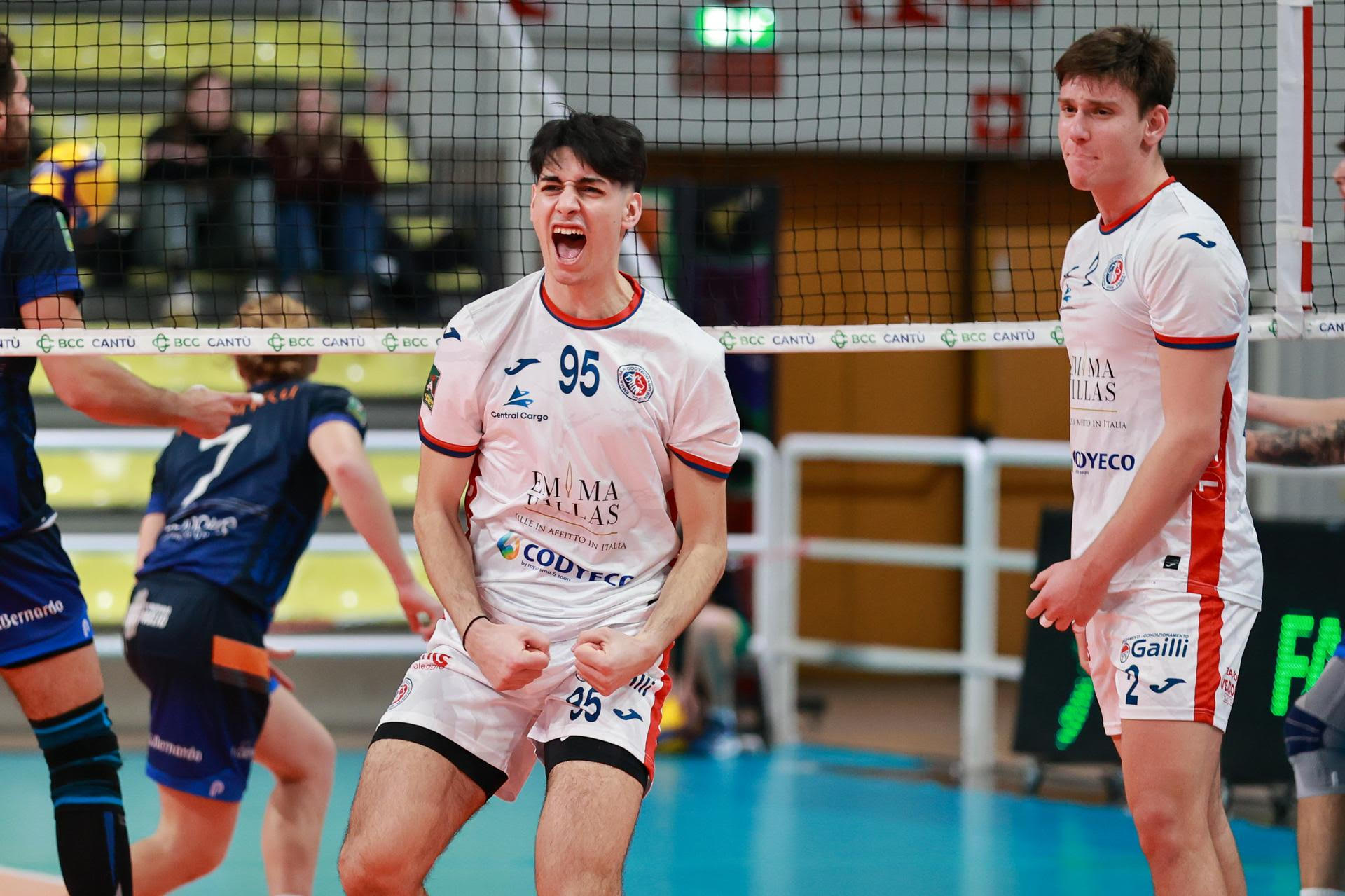 Emma Villas Codyeco, nell’ultima partita contro Cantù, sconfitta al tiebreak. Oltre il passivo, spicca la prestazione di alcuni atleti, in particolare Rocca e Baldini (per quest’ultimo si è trattato dell’esordio in stagione). L’opposto veneto, chiamato al difficile compito di sostituire Nelli, è risultato uno dei più prolifici con 24 punti e ben 8 muri (record di giornata in tutta la serie A2). Il più efficace della squadra e di tutta la serie A2 nella 4° giornata è stato Luigi Randazzo, con ben 28 punti e 2 muri. Nella coppia di centrali si è distinto in particolare il classe 2005 Tommaso Baldini. Il centrale toscano, originario di Massa, è risultato il terzo miglior realizzatore con 11 punti e 2 muri. Il difetto che ha pesato tuttavia è stato il servizio, dove i toscani hanno registrato 28 errori a fronte di un solo ace.