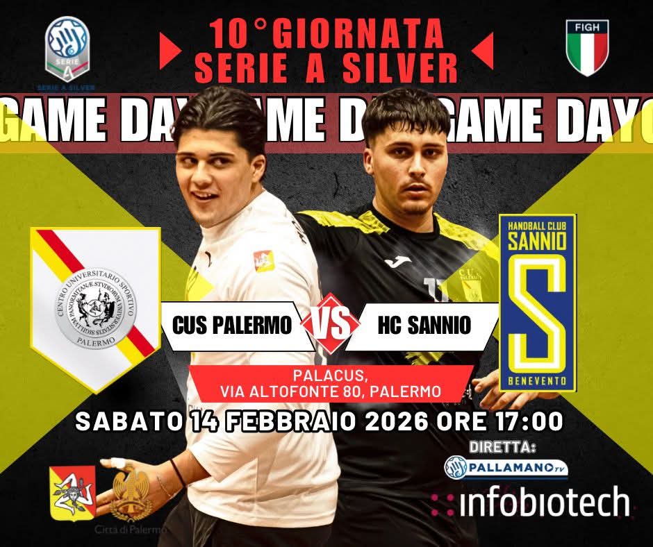Il Campionato di Serie A Silver riaccende i motori e per il CUS Palermo Pallamano il sipario si alza tra le mura amiche. Sabato 14 febbraio, alle ore 17.00, al PalaCUS, i ragazzi guidati da coach Tornambè ospiteranno il Sannio per la prima giornata del girone di ritorno.