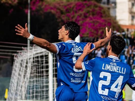 Nella ripresa il ritmo cala, complice la stanchezza, ma la difesa azzurra alza il muro. La mossa vincente arriva dalla panchina: mister Turati inserisce Riccardi e l’intuizione è geniale. L’attaccante si proietta verso la porta come un forsennato e scarica in rete il gol del 2-1, facendo letteralmente tremare i gradoni del “De Simone” per la gioia.