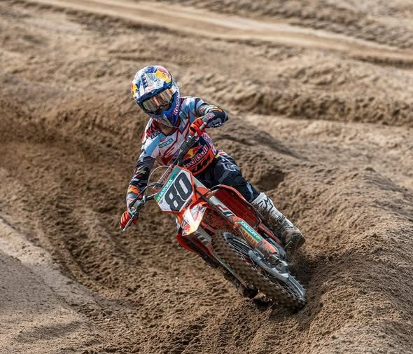 Alle sue spalle, il compagno di squadra Simon Längenfelder ha consolidato la sua leadership in campionato chiudendo al secondo posto, mentre il lettone Janis Reisulis (Yamaha) ha festeggiato il primo “top 3” in qualifica della sua giovane carriera. Da segnalare il positivo ritorno alle gare di Ferruccio Zanchi, che ha portato la Ducati Desmo250 MX al nono posto assoluto al debutto sulla sabbia.