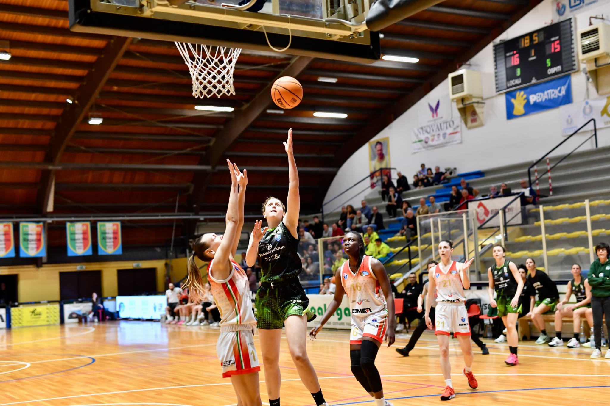 Il secondo periodo, tuttavia, si rivela decisivo in negativo per la Passalacqua. Johnson fatica sotto la pressione avversaria e l’attacco ragusano s’inceppa, precipitando dal -4 al -10 in meno di un minuto. De Cassan, Mosetti e Bernardi mettono il turbo, piazzando un parziale di 23-8 che manda le squadre al riposo lungo sul 39-25 in favore delle padrone di casa.